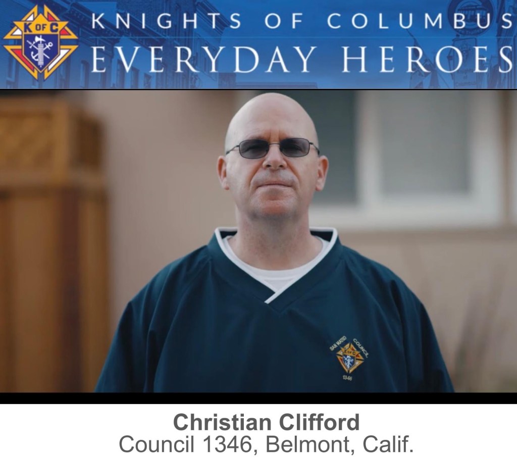 The Knights of Columbus, founded in 1882, is a Catholic fraternal benefit society with over 2 million members worldwide. The series “Everyday Heroes”, according to the Knights of Columbus, “focus the spotlight on these remarkable Knights whose courage, faith and commitment to charity embody the mission of the Knights of Columbus.” Christian Clifford is a 3rd degree member of Council 1346, founded in 1908 and one of the first five councils founded in California. They meet at Immaculate Heart of Mary parish in Belmont.
